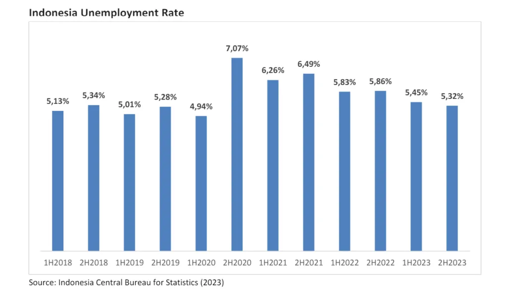 Bridging the skills gap through targeted training programs and vocational education is crucial to improve employability. Indonesia’s young and expanding population creates a large pool of job seekers, which could potentially outpace job creation if adequate economic opportunities are not generated. Additionally, global economic slowdowns, trade disruptions, and volatile commodity prices could impact export-oriented industries, leading to job losses.