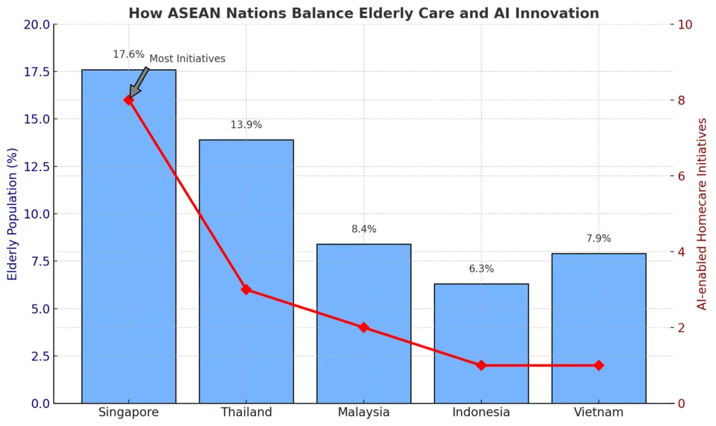 Below is a comparison of aging trends and AI homecare deployment across the region: