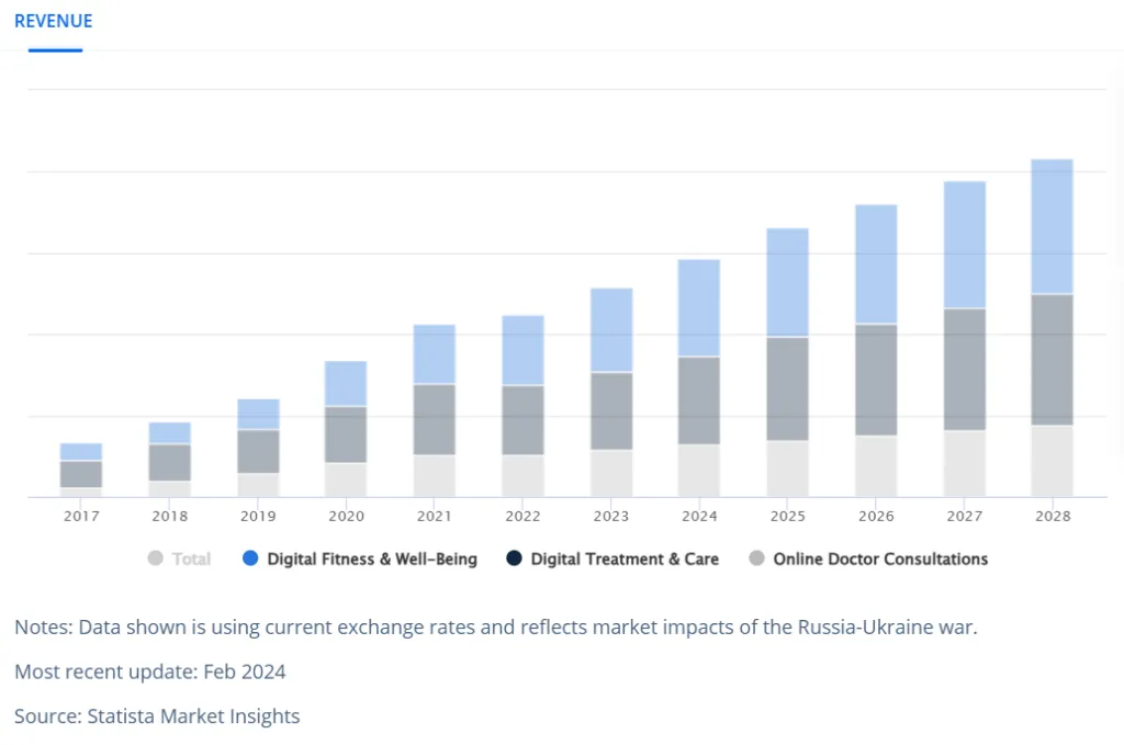 The Digital Health market in Malaysia is experiencing rapid growth, with a projected revenue of US$587.90 million in 2024. This market is forecasted to expand at a robust annual growth rate of 9.14% (CAGR 2024-2028), reaching a volume of US$834.20 million by 2028. In research conducted by Market Research Malaysia from various sources and reports, our team will disclose the factors driving market expansion, including consumer shifts, innovation and investment, and macroeconomic influences. We will also reveal the challenges faced in the adoption of digital health in the country.